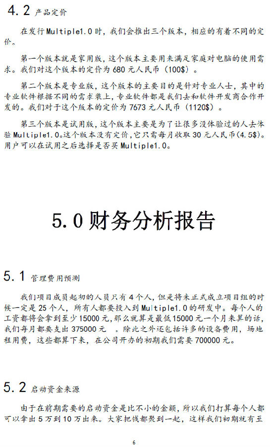 《Multiple1.0创业计划书》