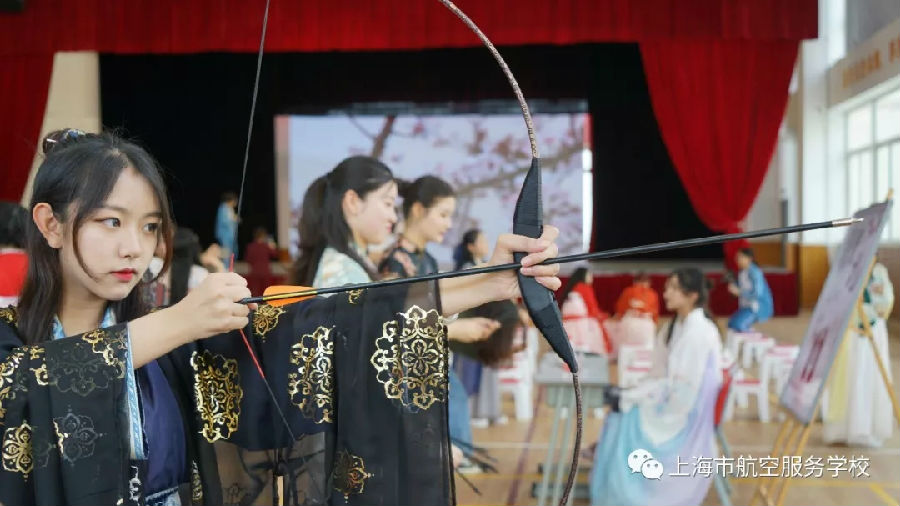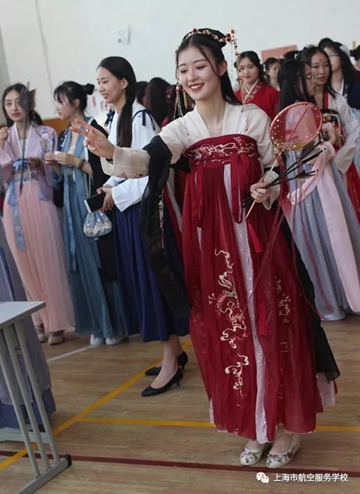 2019年5月5日中午,上海市航空服务学校第二届社团节——校园华服日主题活动在我校体育馆顺利举行。来自各个专业部由90多位身着中华古典服装的同学们为大家带来了一场视觉盛典。华服日主题活动分为“六艺”体验活动、川沙公园校园采风等,分别由学校书法社、礼仪社、摄影社等社团的指导老师、同学组织和参与。