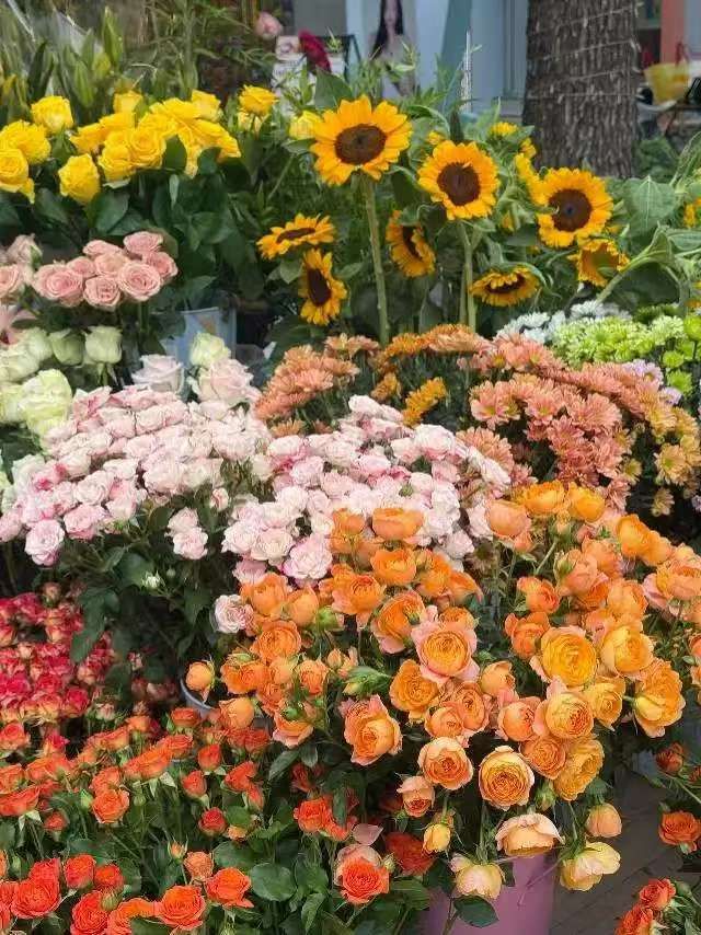 十一假期,我去了家附近的花市。一进去,满眼都是绚烂的色彩,向日葵金黄灿烂,像小太阳;各色玫瑰争奇斗艳,粉的、橙的、红的,层层叠叠的花瓣特别柔美;还有一些叫不出名字的小花,簇拥在一起,热闹极了。花香弥漫在空气中,深深吸一口,满心都是愉悦。
