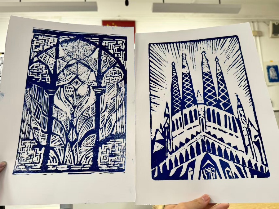上周五我学习了印刷版画,当油墨均匀铺满版面,覆上纸张的瞬间便多了份期待。用滚筒反复碾轧时,能听见纸张与板材摩擦的轻响,揭开的那一刻,原本零散的刻痕突然汇聚成完整的画面,油墨的浓淡在纸上自然晕开,连偶然的瑕疵都成了独一份的惊喜。这便是版画的魅力:它从不是一蹴而就的创作,而是在刻、印、揭的循环里,让我们学会与耐心为伴,在手工的温度里,留住最质朴的艺术感动。
