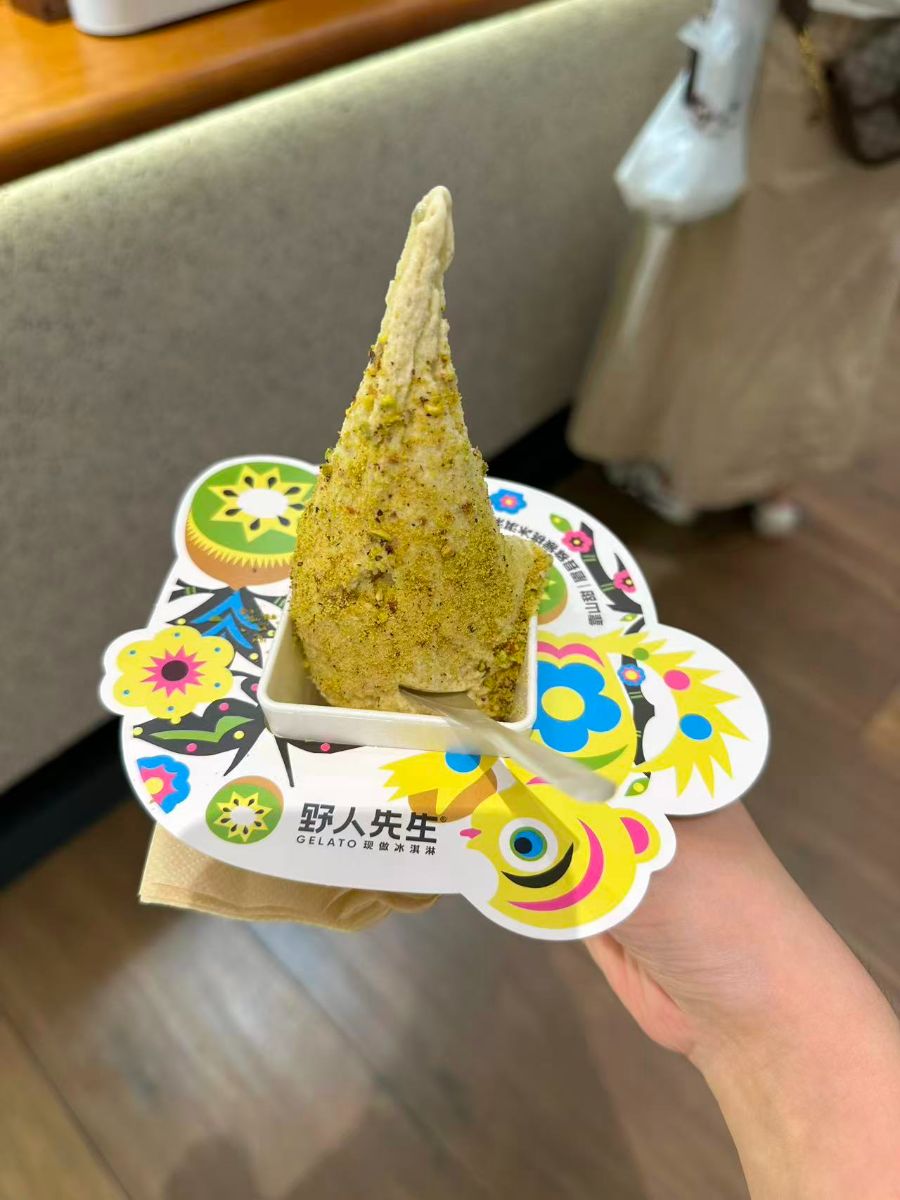 在“野人先生”家邂逅的这款冰淇淋,简直是冰淇淋界的艺术作品!它的造型独特,圆锥状的冰淇淋上撒满了开心果碎,一口咬下去,坚果的香脆和冰淇淋的绵密完美融合,在嘴里迸发出让人满足的口感。装冰淇淋的托盘也充满了童趣,彩色的图案、可爱的设计,让吃冰淇淋的过程变得更加有趣。GELATO的口感比普通冰淇淋更浓郁,据说用的是新鲜的原料,现做现卖,每一口都能感受到店家的用心。在某个闲暇的时刻,来上这么一份冰淇淋,仿佛所有的不开心都被这甜蜜和创意驱散了,它不仅仅是一款甜品,更是一场味蕾和视觉的双重盛宴。
