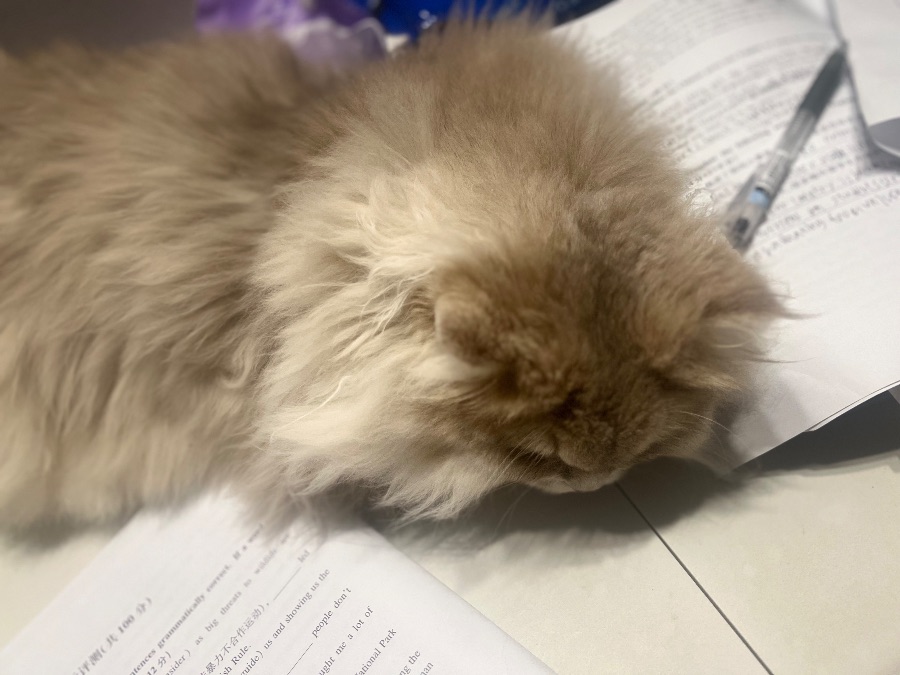 布丁是一只拥有蓬松长毛的小猫,毛色柔和如淡奶咖,点缀着一圈洁白的围脖,像冬日里最温暖的小云朵。它最爱在午后的阳光下蜷缩成毛球,偶尔抬起圆溜溜的眼睛,好奇地打量着这个世界。当你伏案学习时,它会悄悄跳上桌面,用毛茸茸的小脑袋蹭你的手背,仿佛在说:“别太累,陪我玩一会儿吧。”