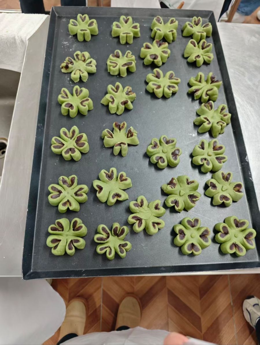 我参加了学校的中点社团,今天我们跟着老师第一次尝试做抹茶味的酥点,每个人从原材料开始亲手制作,经过老师的细心指导与耐心演示,我们都开始亲手制作,在烤箱里把它烤熟了之后,我们老师让我们品尝,第一次品尝抹茶味糕点,清新茶香瞬间在口中散开,与甜润糕体交织,美妙极了。它不像普通甜点那般甜腻,而是带着抹茶独有的淡雅与回甘。咬一口,细腻口感在舌尖蔓延,仿佛置身于茶香四溢的茶园。这抹茶味糕点,给我带来别样的味觉享受,让人回味无穷