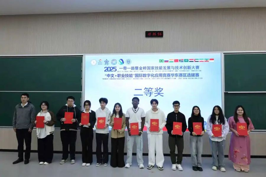 近日,2025一带一路暨金砖国家技能发展与技术创新大赛之“中文+职业技能”国际数字化应用竞赛选拔赛(华东赛区)在南昌职业大学圆满落幕。学校贾梦琦、朱俊祺两位同学凭借出色表现斩获赛事二等奖,展现了学校在“中文+职业技能”融合教育领域的扎实成果。