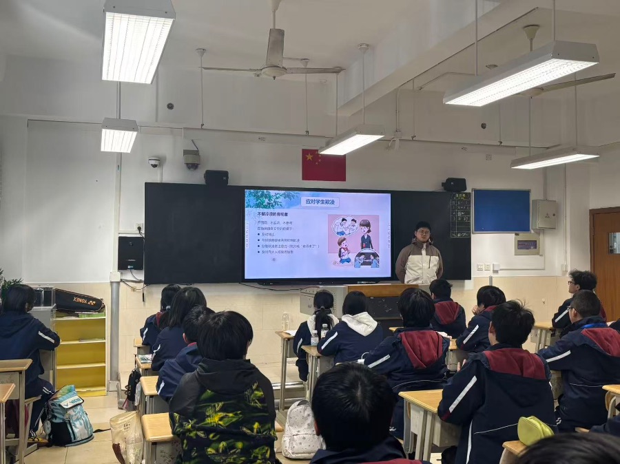 本周五的班会课因为学校里的一起霸凌事件所以严老师向我们展开了对校园霸凌的演讲,他告诉我们一句恶语、一个排斥的眼神,都可能成为刺伤心灵的利刃。我们反对任何形式的霸凌!在此呼吁:遇事冷静沟通,学会换位思考。不做残忍的施暴者,不做冷漠的旁观者,更不做沉默的受害者。让我们携手,对校园霸凌说“不”,共同守护彼此的阳光青春!校园应是学习的净土,而非霸凌的温床。