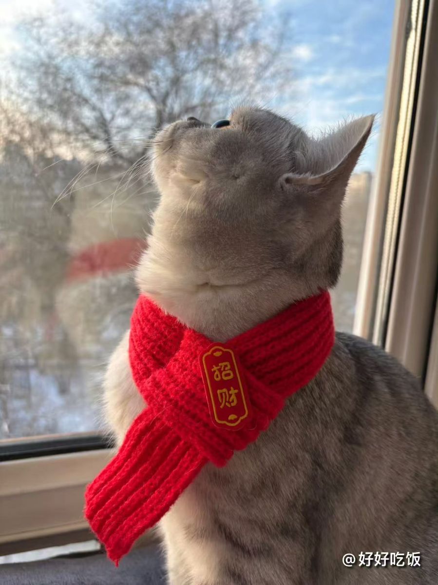 朋友分享他家猫,一眼就被他家的猫猫萌化了!小家伙戴着红彤彤的针织围巾,围巾上还挂着“招财”的小吊牌,喜庆得不行。它乖乖地蹲在窗边,仰着脑袋看外面的风景,侧脸的线条软乎乎的,灰色的毛发摸起来顺滑得很。阳光透过窗户洒在它身上,把毛发染成了暖融融的色调,那小模样又乖又傲娇,像个戴着红围巾的小少爷。朋友说这围巾是特意给它织的,就盼着小家伙能带来好运气,不得不说这搭配也太合适了,看完只想把这只招财小猫带回家,也太可爱啦!