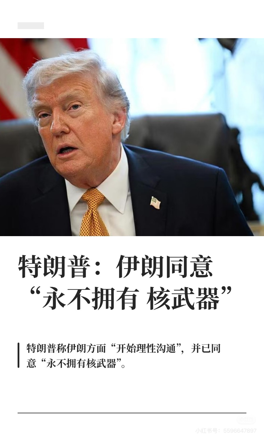 当地时间24日,美国总统特朗普表示,美方正与伊朗进行谈判,并称美军在德黑兰上空“行动自由”;他还称伊朗方面“开始理性沟通”,并已同意“永不拥有核武器”。