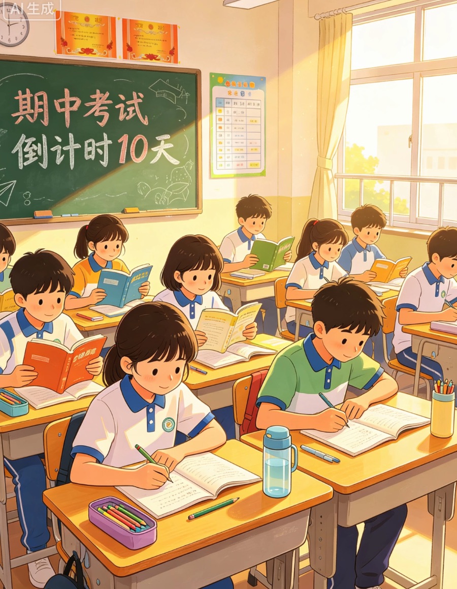 期中考试的脚步越来越近,空气里都多了几分紧张的气息。课本翻了一遍又一遍,笔记写满了重点与易错点,课间少了几分喧闹,多了埋头刷题的身影。或许会感到疲惫,或许会偶尔焦虑,但每一次认真的复习,都是在为自己积攒底气。不必慌张,不必攀比,把该掌握的知识梳理清楚,把粗心的毛病慢慢改正,以平稳的心态迎接这场检验。愿我们都能沉下心来,全力以赴,不负这段时光的努力,在考场上从容作答,交出一份让自己满意的答卷。