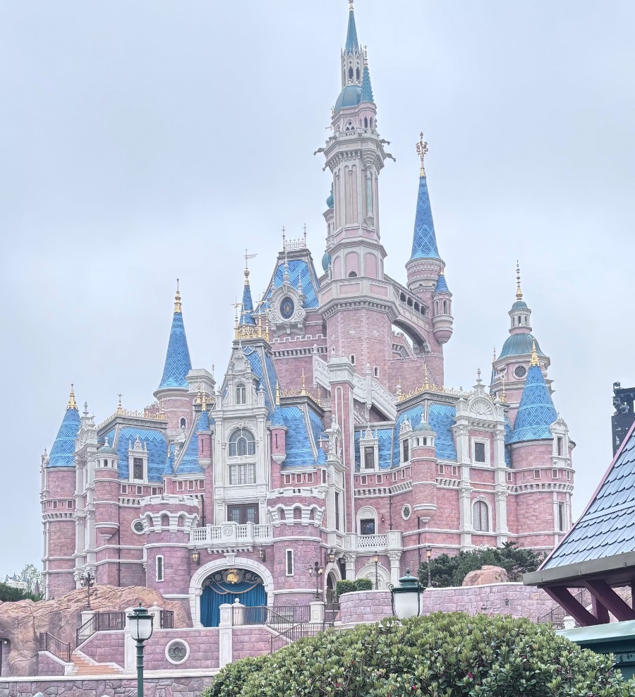 站在上海迪士尼乐园里,目光不自觉被那座梦幻城堡吸引。淡粉色的墙身搭配着宝蓝色的尖顶,在薄雾里像被裹上了一层柔光,仿佛从童话书里直接走了出来。