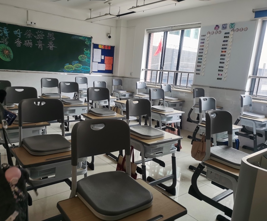 整齐排列的课桌椅、黑板上“诗书时光,苦砺青春”的粉笔字,还有窗边的心愿树,每一处细节都藏着校园里独有的朝气。