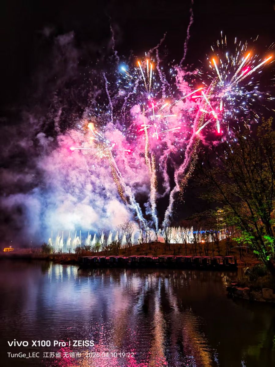夜幕低垂,窑湖小镇的湖面被一场盛大的烟花彻底唤醒。第一簇花火冲破夜色,粉紫与金橙的光焰在墨色天幕炸开,漫天星火簌簌坠落,烟雾如柔云轻笼,将整片夜空晕染成温柔的粉调。紧接着,数道金色尾焰划破天际,层层叠叠的花火接连盛放,流光溢彩的倒影在湖面铺展开来,把水面变成了流动的星河。岸边的游船静泊如诗,远处的树木在夜色里晕成朦胧剪影,连晚风都裹着烟火的细碎暖意。这场独属于江南水乡的浪漫盛放,将夜晚的温柔与热烈尽数揉进漫天流光里,每一朵烟花的起落,都是写给小镇的温柔情诗,定格了这一刻的惊艳与难忘。