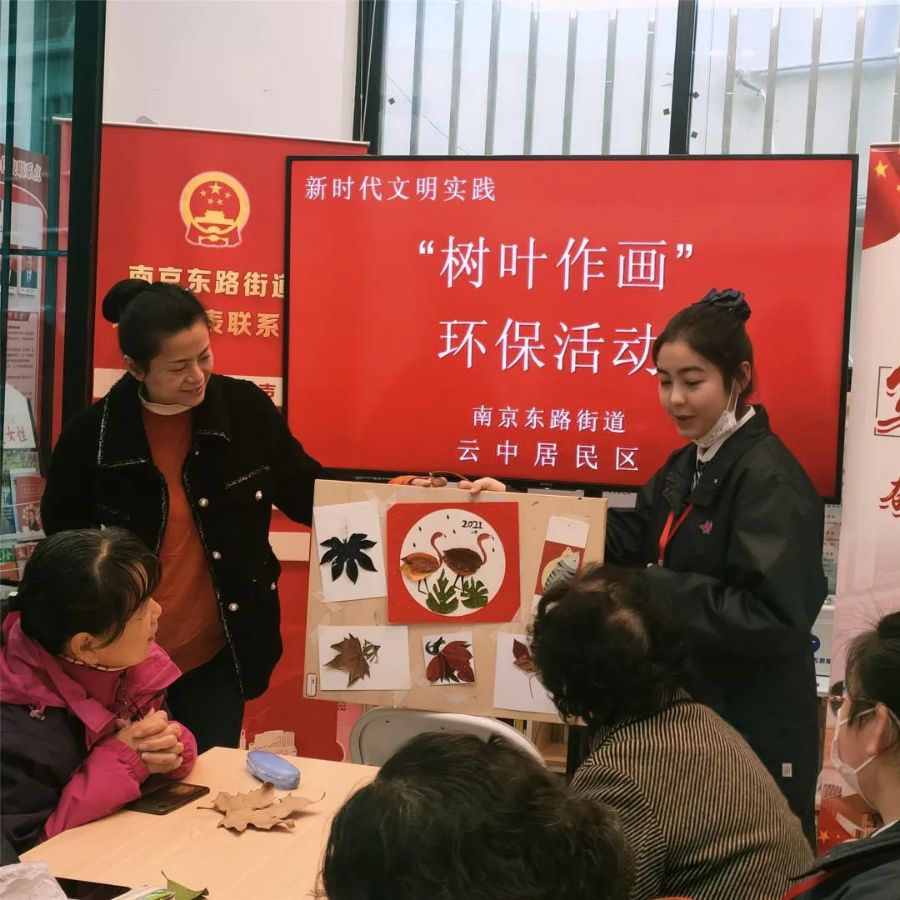 尤其是今年的“学雷锋周”期间,美术专业的同学们借助“特色值星服务”契机,为学校周边社区居民提供服务,送教上门,手把手教居民们用树叶作画,受到了居民交口称赞——这一活动也为云中居委庆祝“三八妇女节”增添了别样特色。
